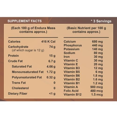 - Look at the label before buying. Endura Mass Weight Gainers have good ingredients. They do not have harmful stuff. It is always good to know what you eat.