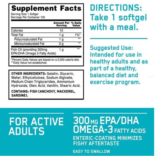 Optimum Nutrition (ON), Omega-3 Fish Oil, 300mg -100 Softgels